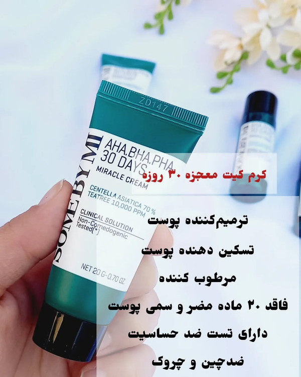 کیت معجزه سی روزه سلوشن AHA.BHA.PHA سام بای می یک کیت مسافرتی در اندازه قابل حمل دارای خواص درمانی و تسکین دهندگی پوست میباشد. این کیت شامل محصولات زیر میباشد تونر معجزه ۳۰ روزه ۳۰ میلی لیتر AHA BHA PHA سرم معجزه ۳۰ روزه ۱۰ میلی لیتر AHA BHA PHA کرم معجزه ۳۰ روزه ۲۰ گرم AHA BHA PHA شوینده سام بای۳۰میل @nazli_beauty127 @nazli_beauty127 ترتیب استفاده محصولات کیت معجزه ۳۰ روزه سلوشن AHA.BHA.PHA سام بای می به صورت زیر میباشد شوینده> تونر > سرم> کرم سرم: پس از استفاده از تونر، ۳ الی ۴ قطره از سرم را روی صورت بریزید و به آرامی ماساژ دهید تا روی تمام صورت پخش شود. با ضربات ملایم باعث جذب بهتر مواد شوید. کرم: مقدار مناسبی از کرم را روی صورت پخش نمایید و با ضربات ملایم باعث جذب بهتر مواد شوید. #تونر#شوینده#میراکل #سامبایمی #کرمآبرسان