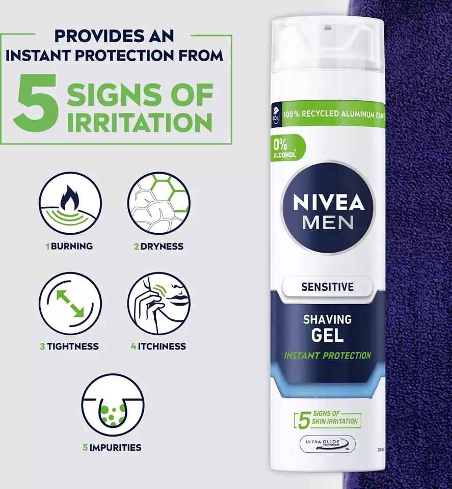 ژل اصلاح NIVEA Sensitive بهطور ویژه برای پوستهای حساس طراحی شده، اما برای انواع زیر نیز ایدهآل است: