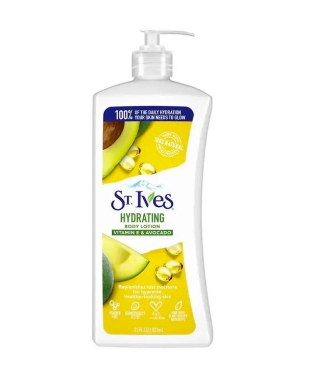 پوست های خشک و دهیدراته به لوسیون قدرتمندی نیازدارند که روزانه بتواند به خوبی به آبرسانی و رطوب رسانی آنها بپردازد و نرمی و لطافت آن را چند برابر کند. لوسیون بدن سنت ایوز مدل ویتامین E و آووکادو حاوی ترکیبات مرطوب کننده طبیعی مانند عصاره آووکادو و ویتامین E جهت آبرسانی عمیق و شادابی پوست های خشک و حساس عرضه شده است. ویتامین E برای پوست بسیار مفید است و علاوه بر اینکه بازسازی و احیای سلولی را افزایش میدهد، باعث میشود پوست جوان تر و سالم تر بماند.
